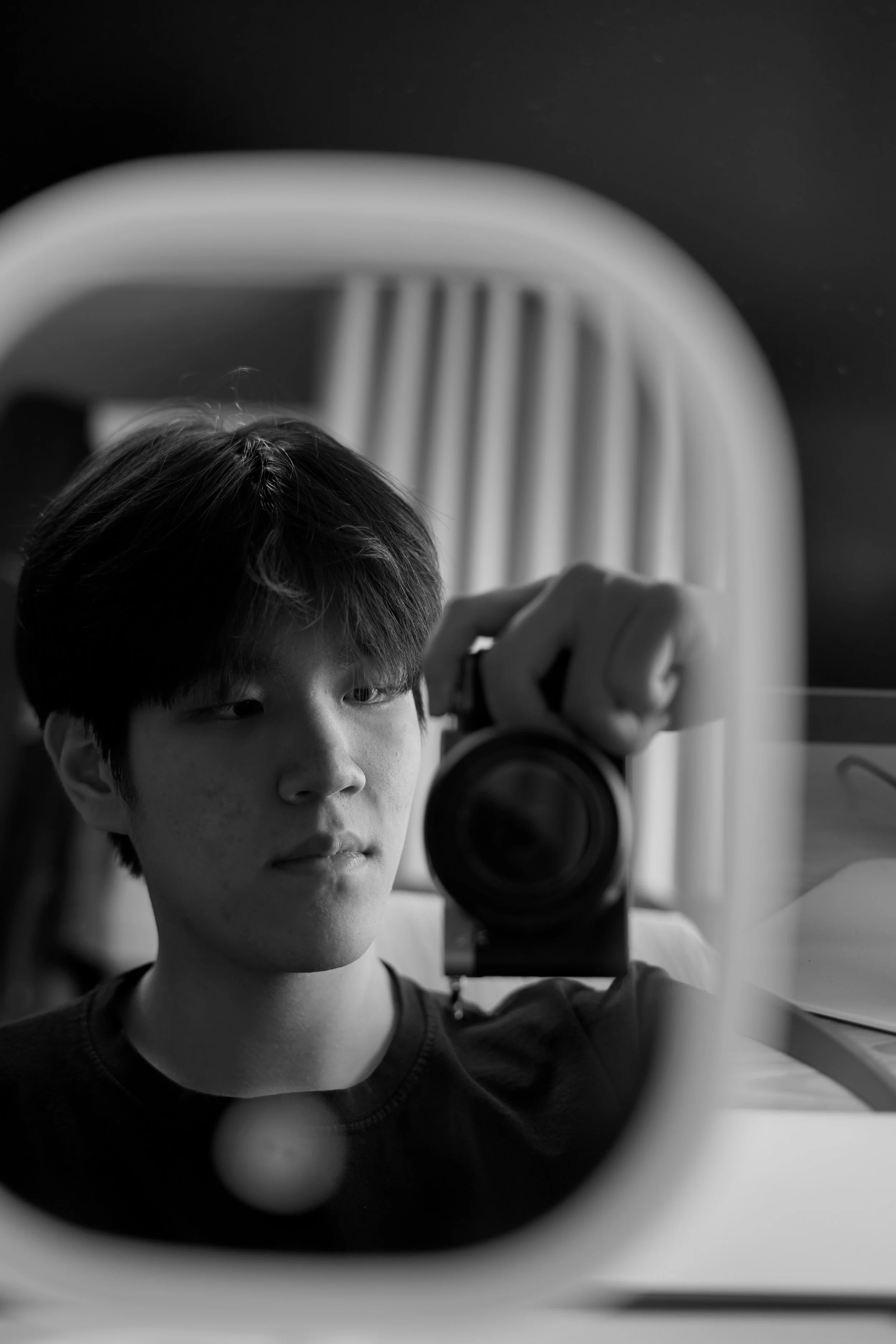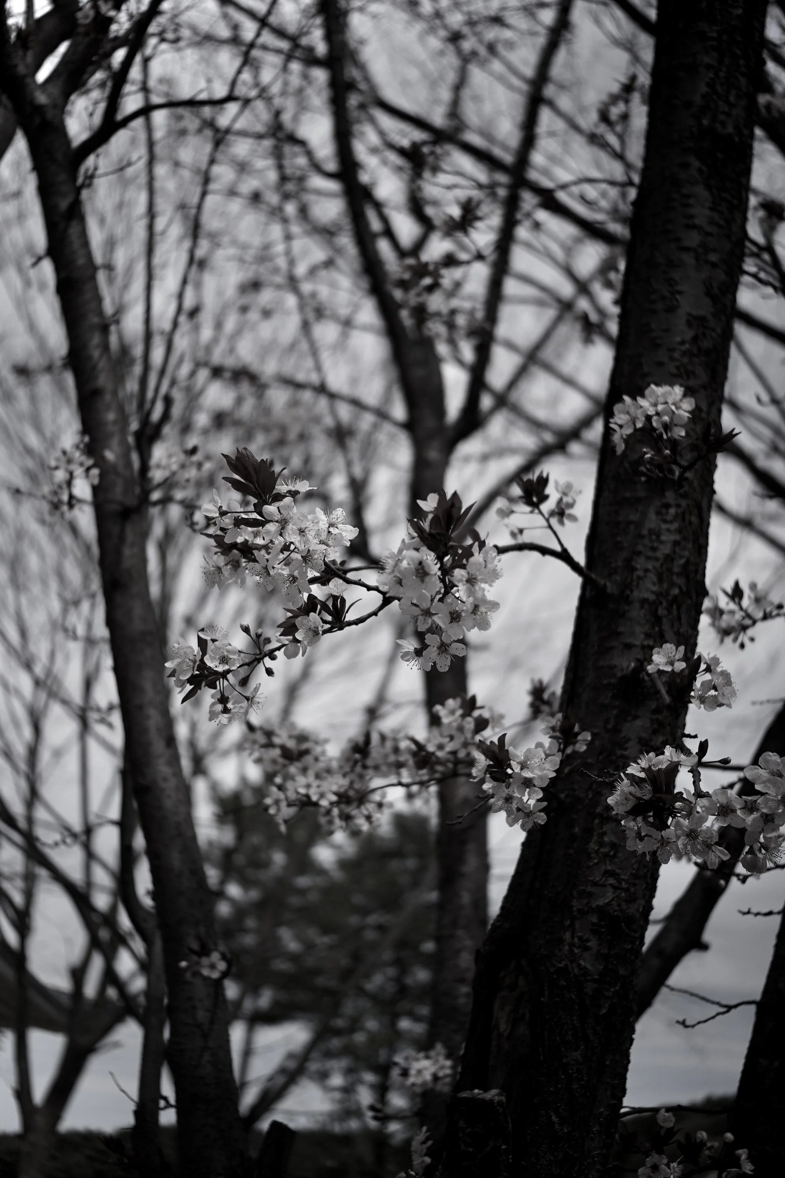 Through restrained tones and soft contrasts, I photograph the quiet tension in everyday life: a city seen from afar, a lone figure by the sea, branches moving against a fading sky.